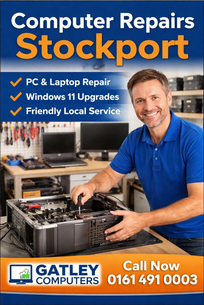 Computer Repairs Stockport – Fast, Local & Reliable If you’re searching for computer repairs Stockport or stockport computer repairs, Gatley Computers provides fast, affordable, and professional services you can trust. 🔗 Visit our homepage:👉 https://www.gatleycomputers.co.uk 📍 View our Google reviews:👉 https://g.page/r/CWEN0B84dC_KEAE/review 🖼️ Suggested Image + ALT Text Image: Technician repairing PC ALT: computer repairs Stockport […]